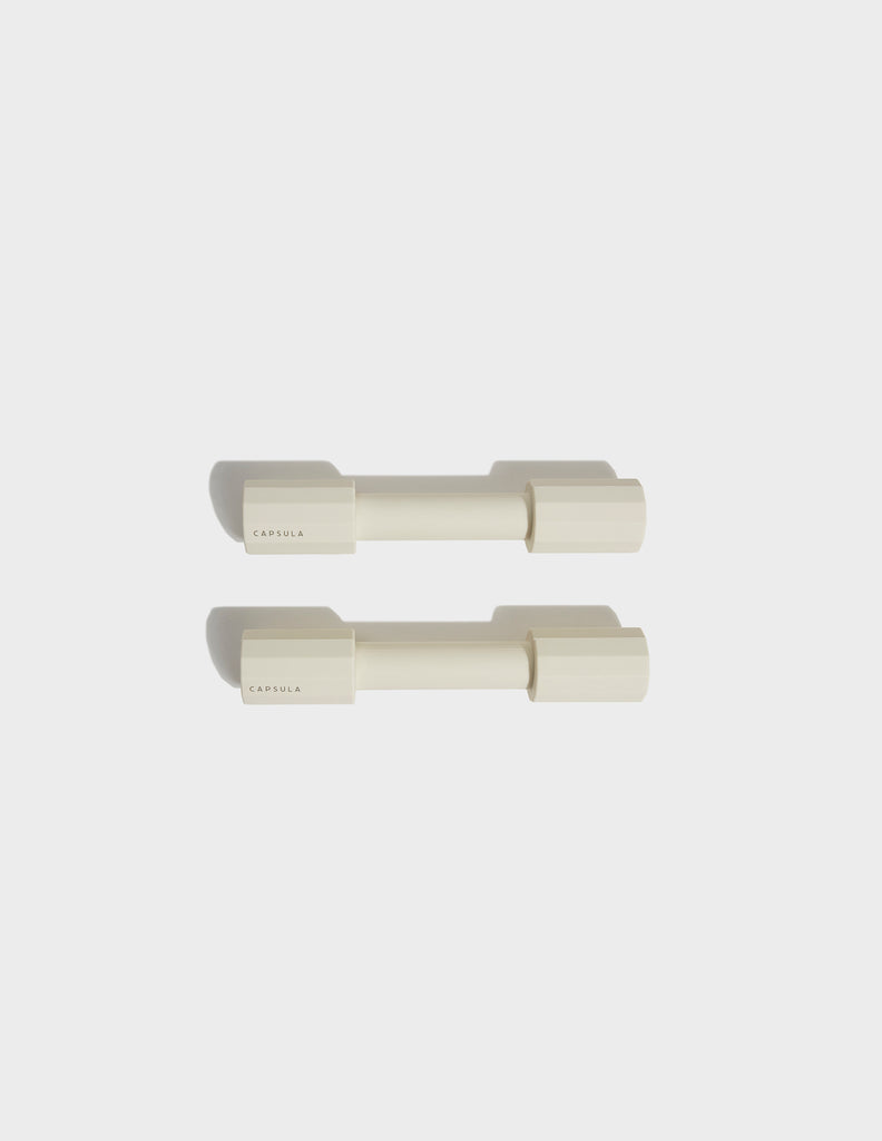 Re-imagined and re-designed Capsula dummbell works as a design piece. It has a touch-friendly coating and stunning colors selection that comes in two versatile shades (oat milk & aqua haze).